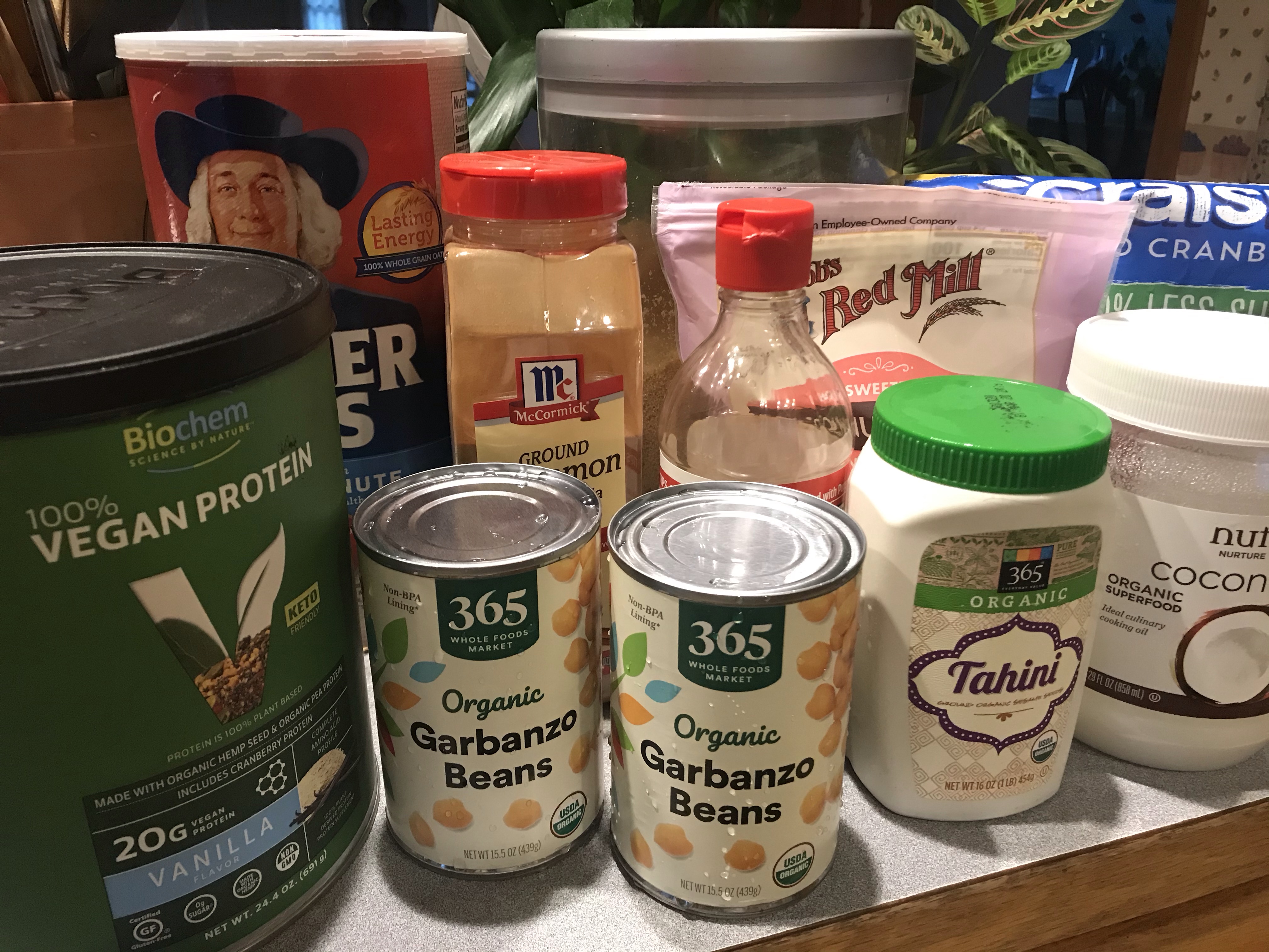 - 2, 15 oz cans of garbanzo (chickpeas) beans, roasted. You could also do them raw? But really roasted is the best because it adds flavor and crunch to the salad. Like a healthy crouton!