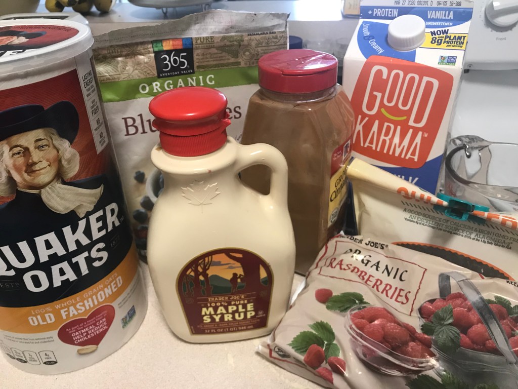 - In a pot on medium-low, combine the apples, raspberries, maple syrup, and pumpkin spice. Cover and simmer for about 5 minutes, stirring occasionally.